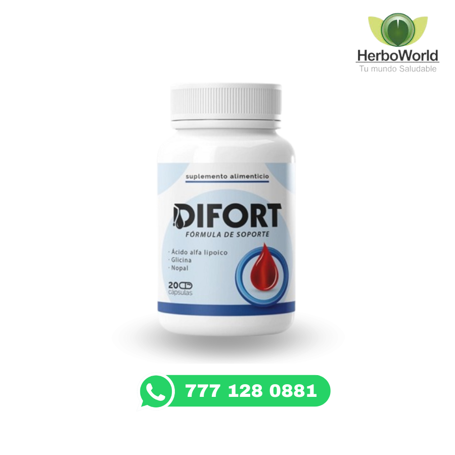 Difort es un complemento alimenticio creado para mejorar el control glucémico de manera natural y sin químicos agresivos. Su fórmula incluye componentes como canela, cromo, ácido alfa lipoico y extractos vegetales, los cuales trabajan en conjunto para estabilizar el azúcar en sangre y apoyar el funcionamiento metabólico.
