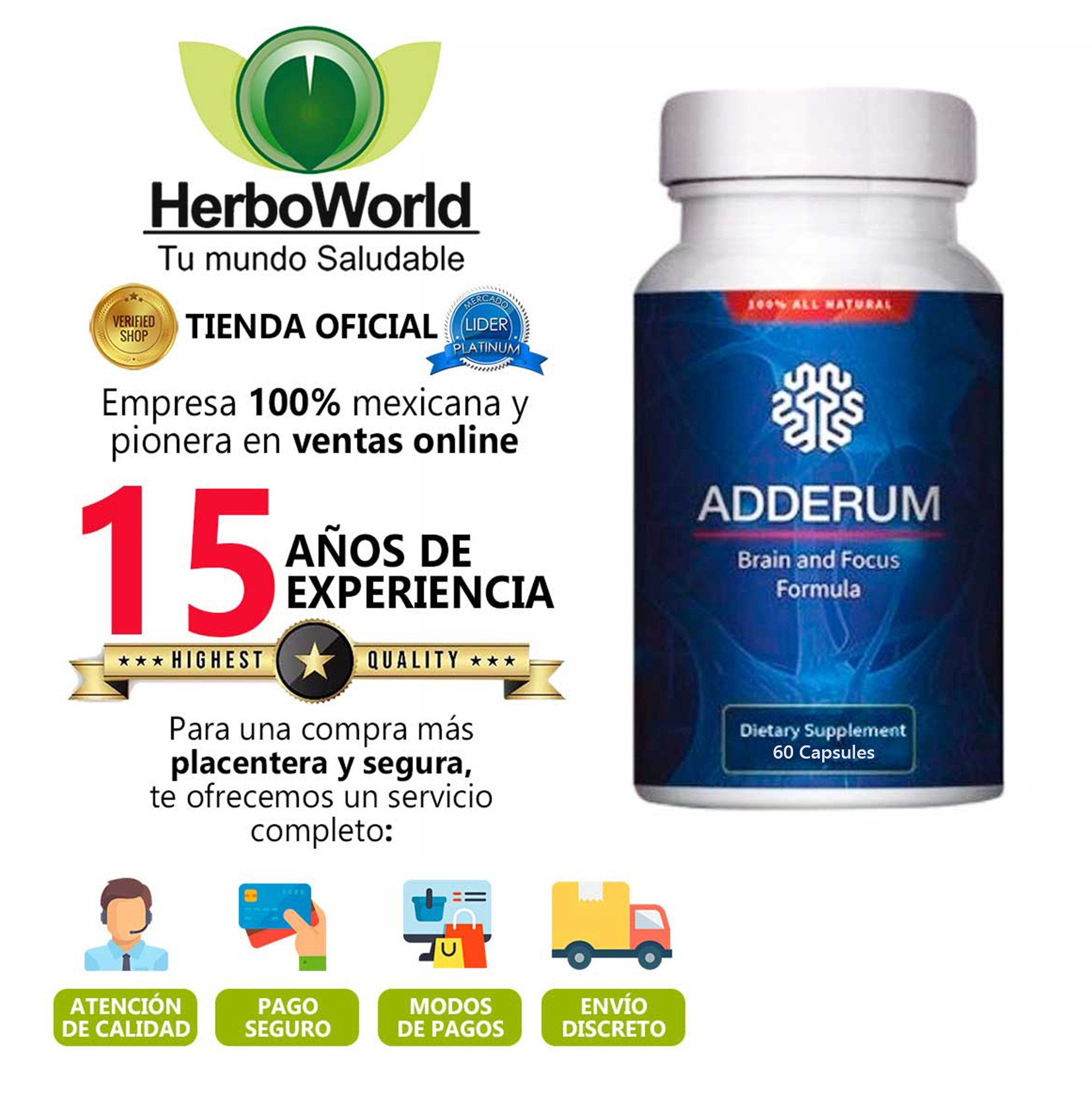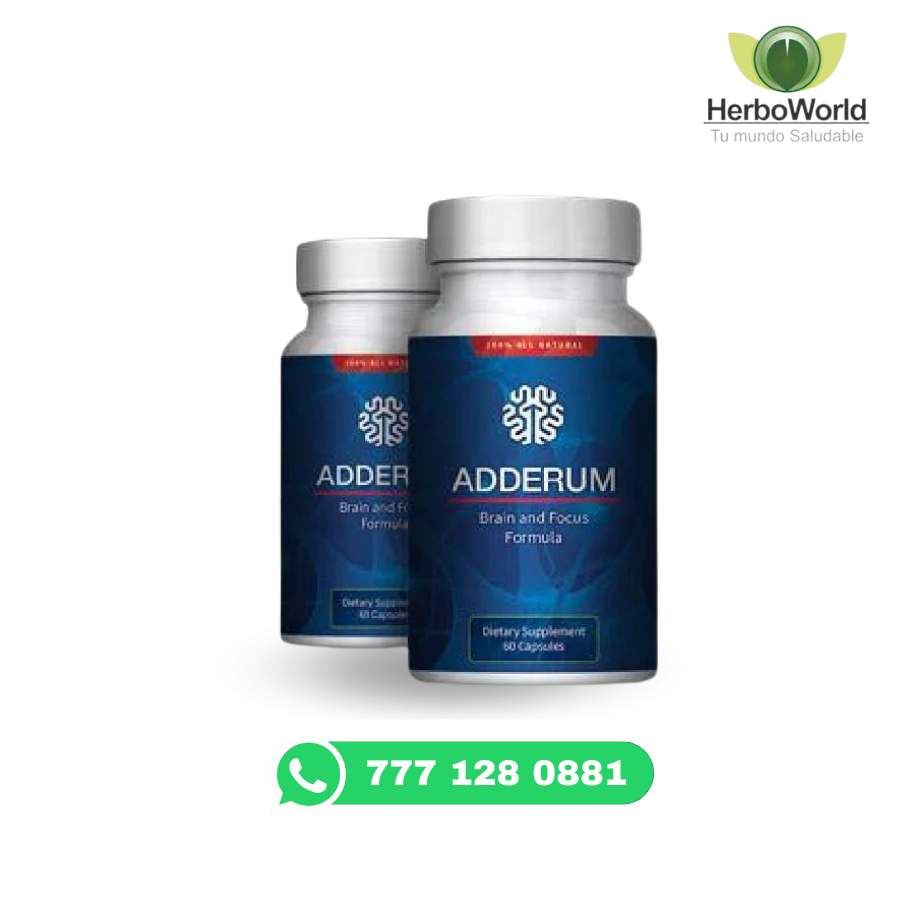 Adderum es un suplemento natural que ayuda a potenciar la capacidad del cerebro y así mejorar la concentración, la energía y aumentar la memoria. Estas capsulas actúan a nivel del sistema nervioso, haciendo que este trabaje de una mejor forma, gracias al control de neurotransmisores, como la serotonina, que benefician al estado de ánimo.