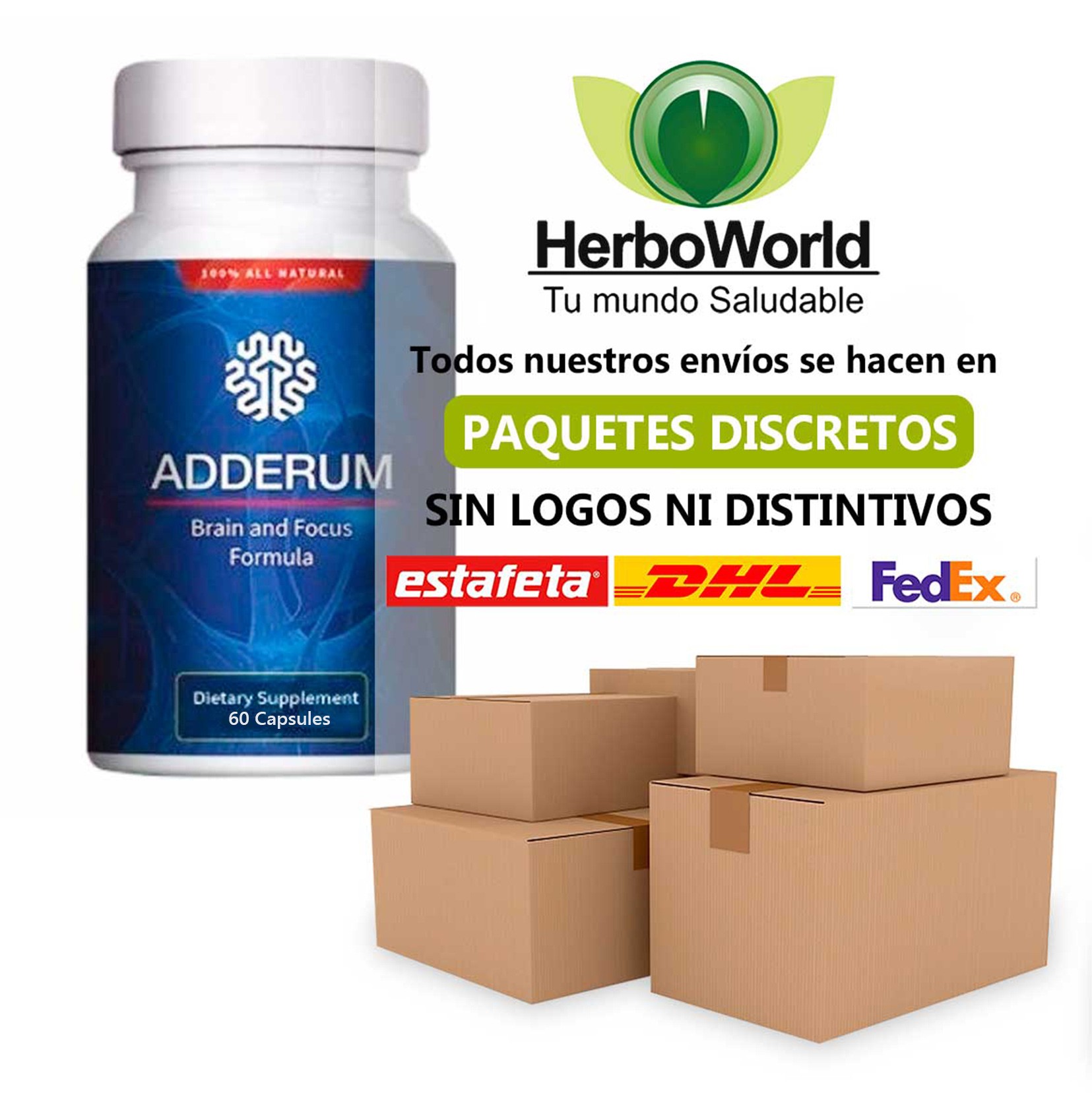 Adderum viene en un frasco de 60 cápsulas para un tratamiento de 1 mes. La dosis indicada es de dos cápsulas al día, 1 en la mañana y 1 en la noche.
